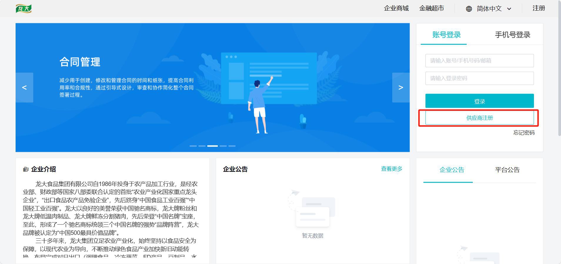 二、龍大集團(tuán)采購平臺(tái)注冊入口